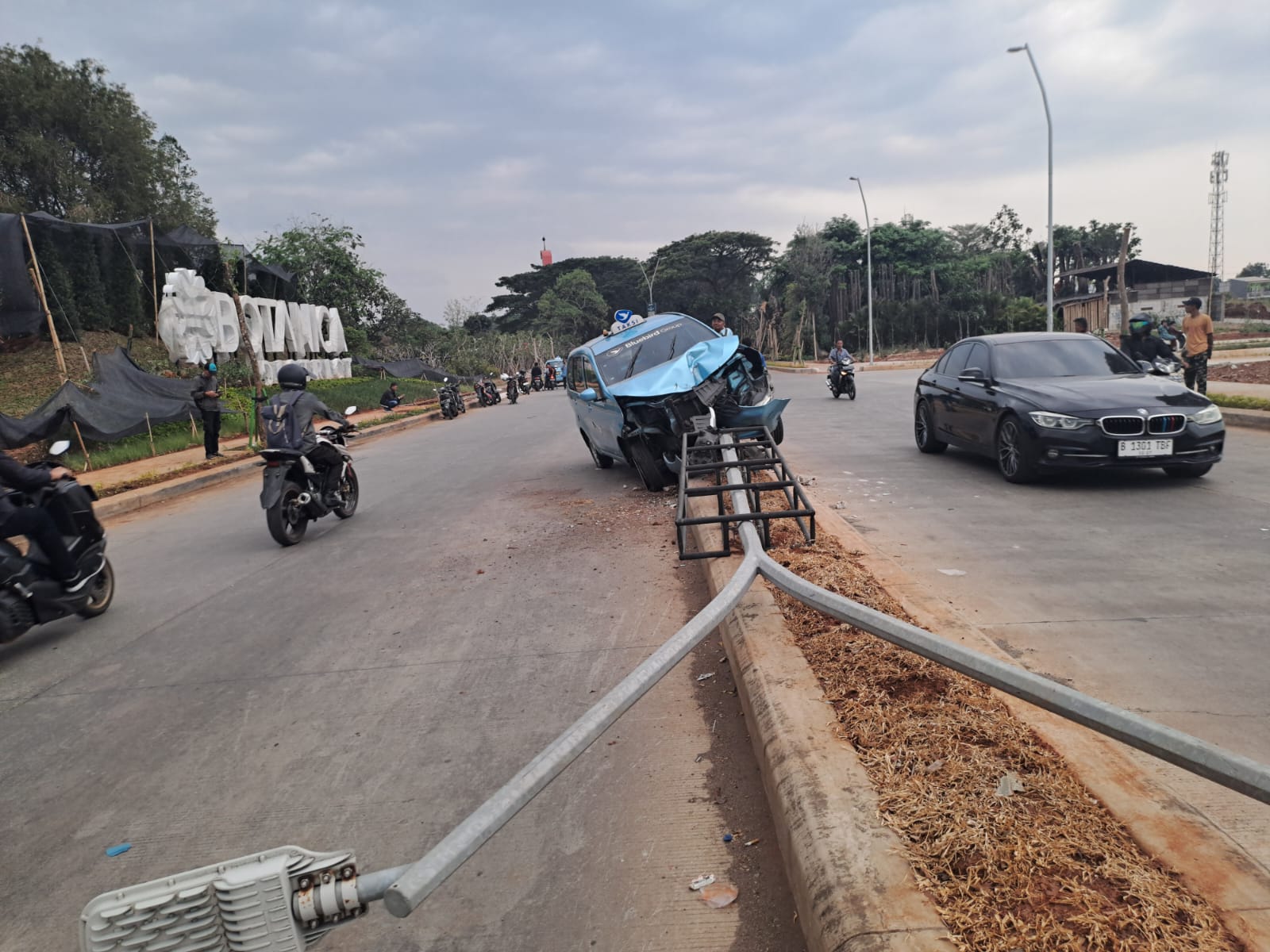 “Akibatnya taksi hilang kendali lalu menyeruduk separator jalan dan tiang lampu,” uajr Heriyadi dalam keterangannya.