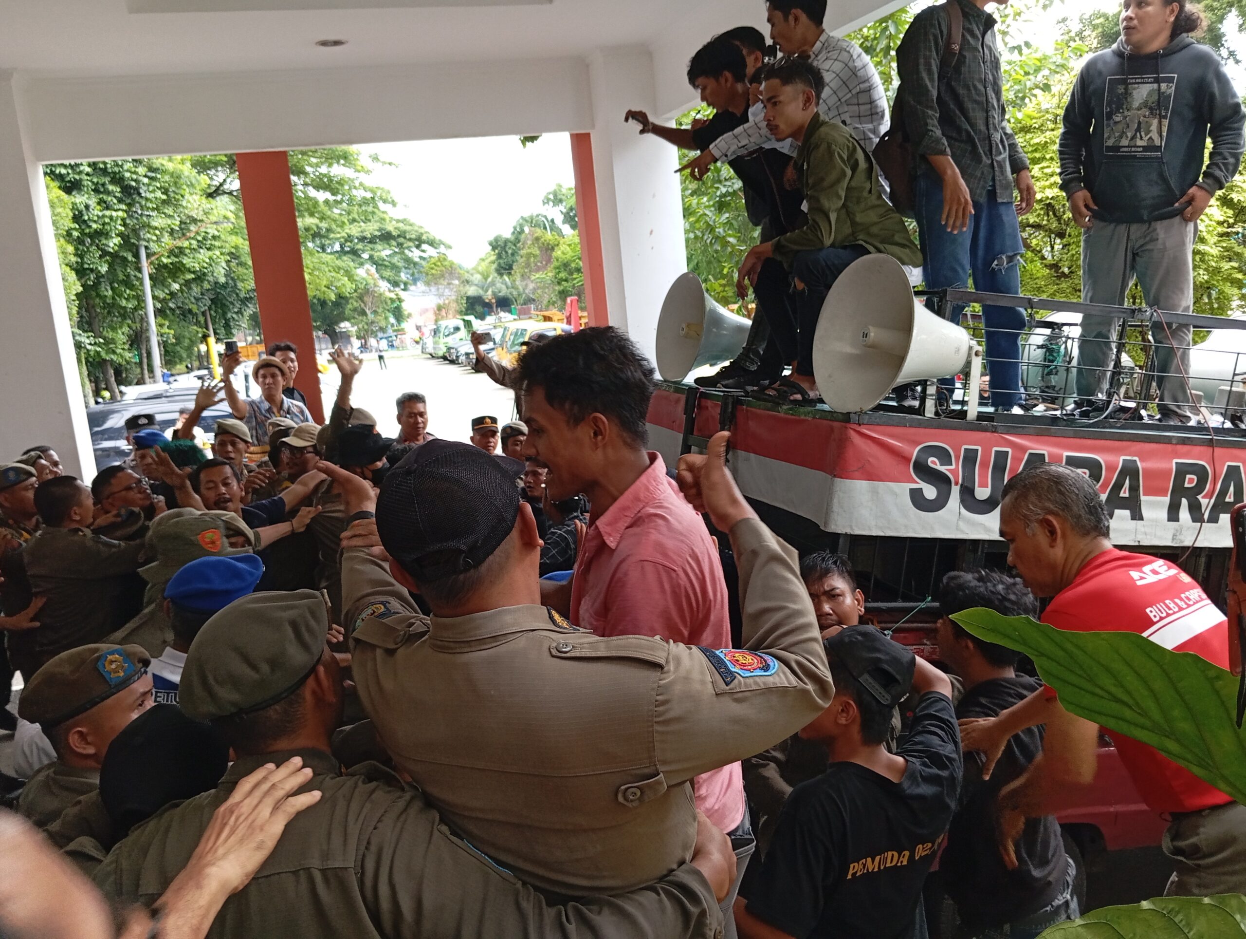 Hal itu disebakan lantaran tuntutan para mahasiswa tersebut tidak digubris oleh pihak Kepala maupun Sekretaris Dinas. Akibatnya, sekelompok mahasiswa itu pun nekat menerobos barisan pengamanan sehingga terjadi saling dorong.