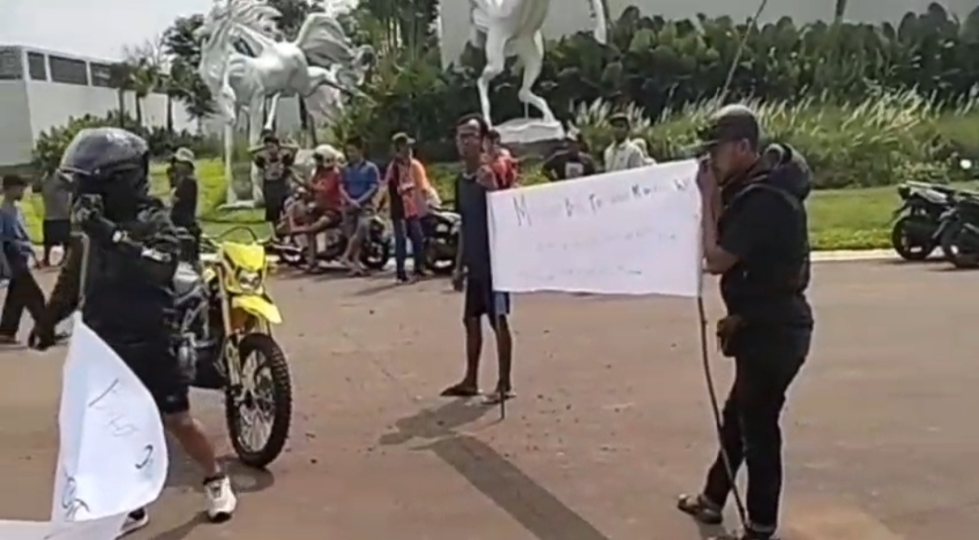 Mereka pun membawa spanduk bertuliskan “Membangun boleh tapi jangan merugikan RT. 03/04. Habis lewat tolong dibersihkan lagi. Ini bukan jalan milik pribadi. Ini jalan umum”.