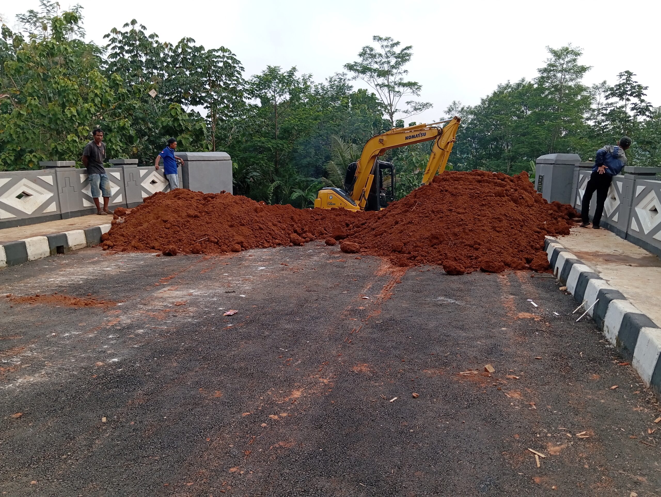 “Jadi pertama kita urug dulu menggunakan tanah ya (Bukan puing lain) bawahnya ini agar tersambung sempurna ke jembatan. Lalu diratakan,” ungkapnya.
