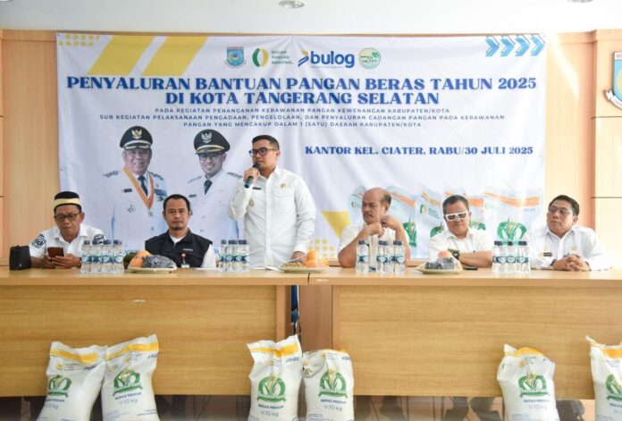 Siberbanten.id, Tangsel –Â Wakil Wali Kota Tangerang Selatan (Tangsel) Pilar Saga Ichsan bersama Badan Urusan Logistik (Bulog) ke KPM Kelurahan Ciater, Serpong menyalurkan bantuan beras kepada 18.024 warga penerima manfaat.